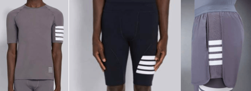 adidas had been aware of Thom Browne’s four-stripe design since 2009. Aside from raising an informal objection in 2007 concerning Thom Browne’s original three-stripe design, adidas took no significant steps until 2021. adidas explained its lack of earlier action in the UK by stating the “tipping point” came in 2020, when Thom Browne launched its “compression range” of sportswear targeting the activewear sector (see below).