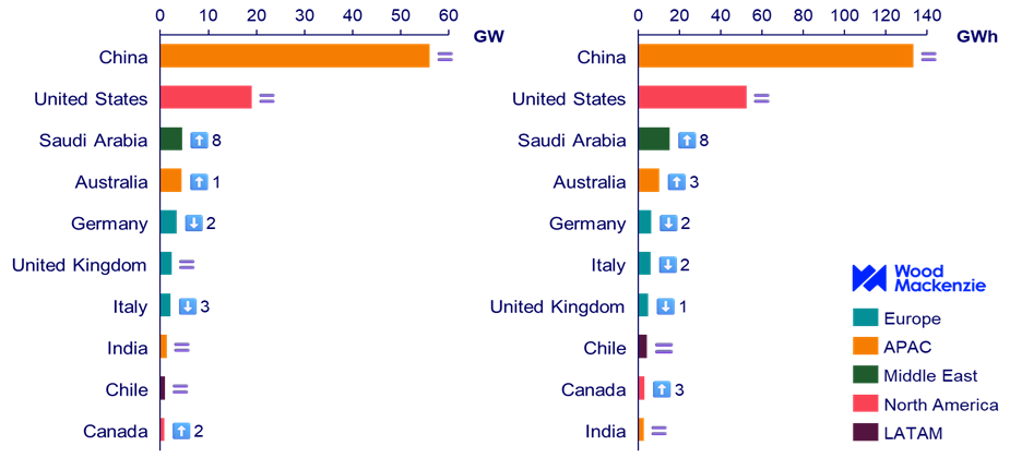 BESS Deployed Capacity in 2025 (taken from page 186 of the report, charts provided by Wood Mackenzie)