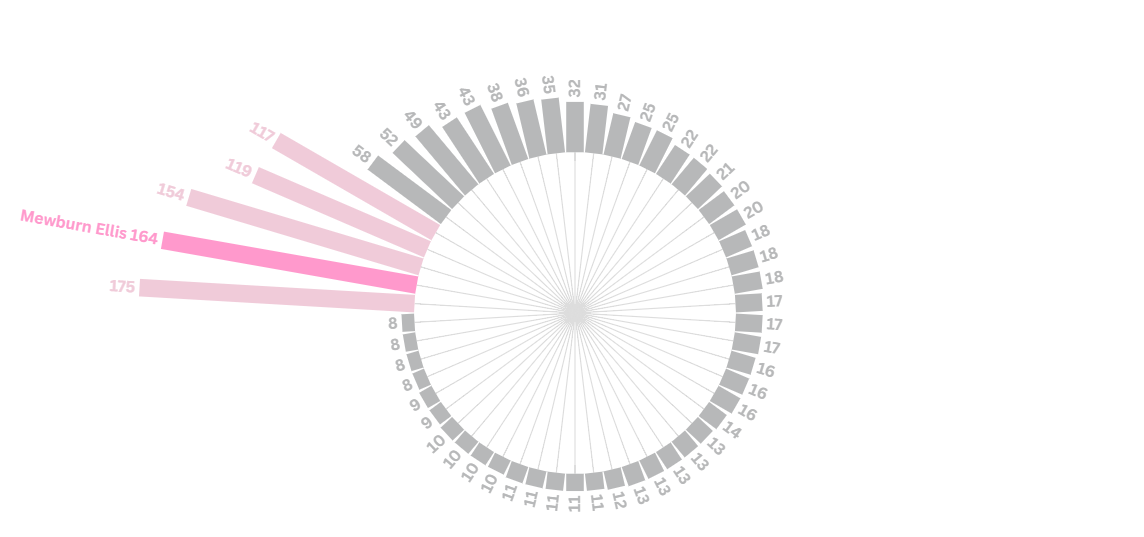 Our figures are even more impressive when considering offensive opposition cases that included an appeal stage, with Mewburn Ellis achieving a higher percentage of patents revoked, and a lower percentage of patents maintained as granted than any of the top 10 most active opponent representatives following an appeal stage.