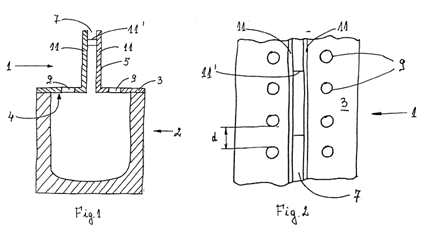In reply to the European search opinion, the patentee had argued that the two walls 11 together defined a single spacer element. Alternatively, if each wall 11 is considered to be a spacer element, these were argued to be arranged transversely rather than longitudinally. At the same time, the patentee amended the claim to include the longitudinal alignment requirement for the spacer elements.